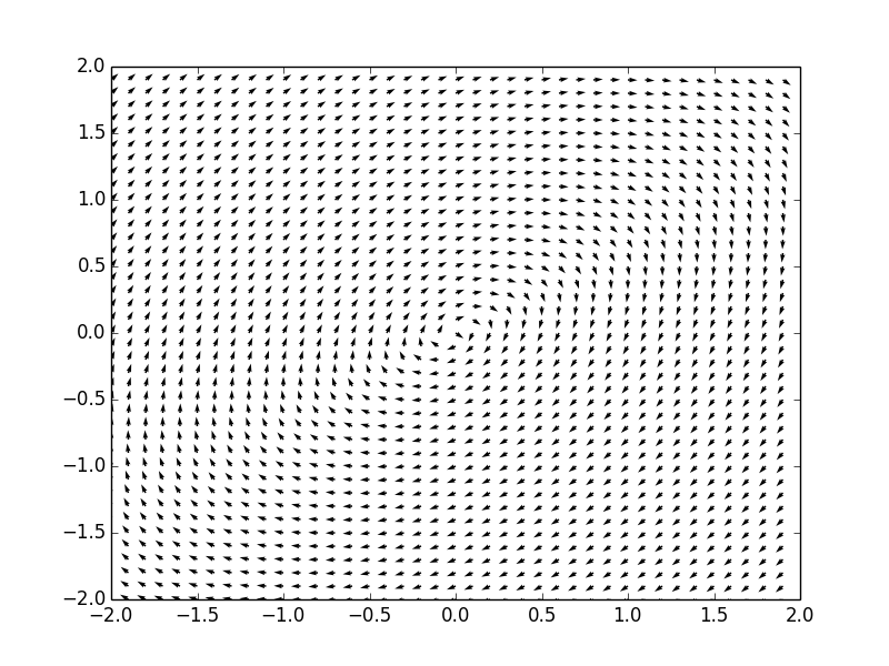 plt.quiver(X,Y,U,V)